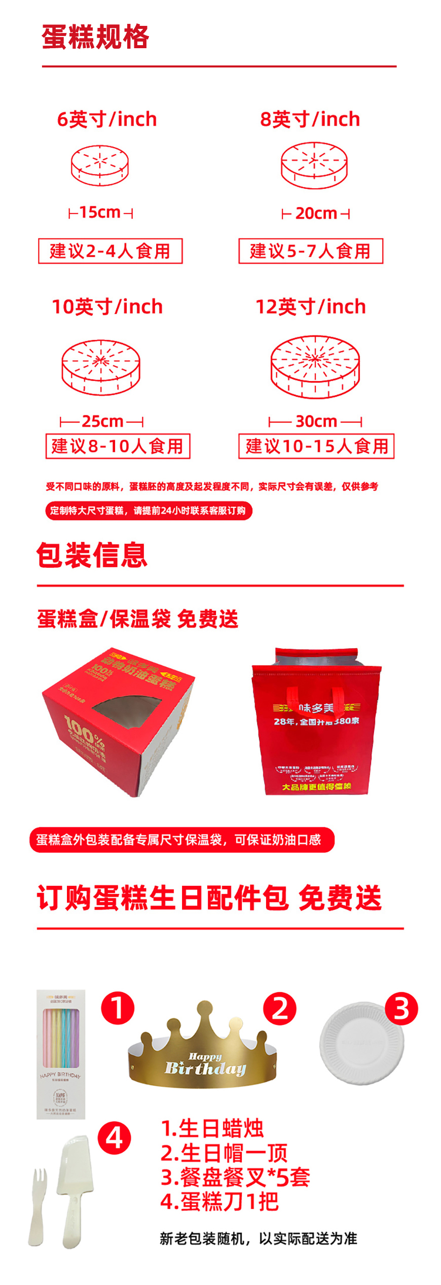 直径45cm以上及大型庆典蛋糕,提前两天16:00前预订。