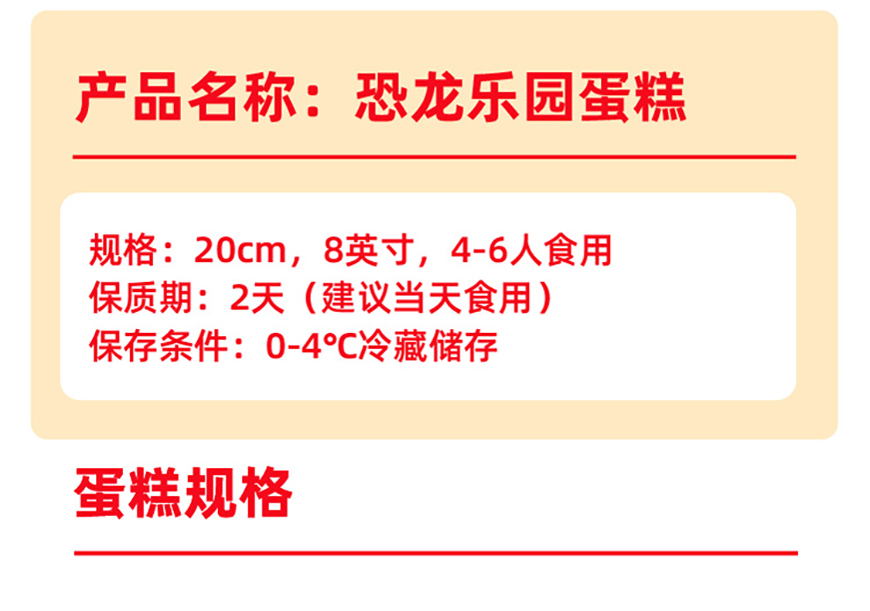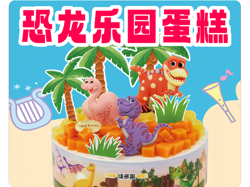恐龙乐园蛋糕规格尺寸不同,产品装饰及恐龙数量略有差异,具体以门店实际供应为准。