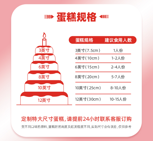 直径45cm以上及大型庆典蛋糕,提前两天16:00前预订。