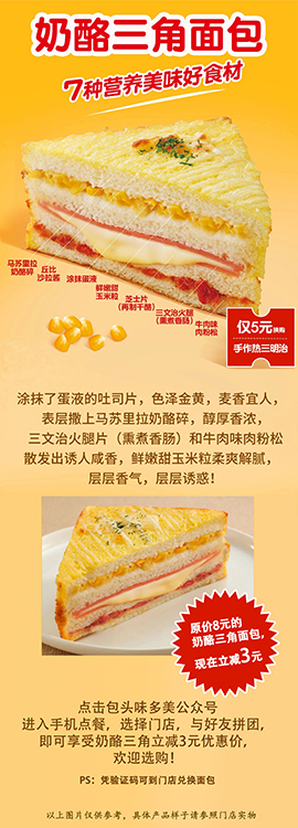 三文治火腿片、肉松和外焦内软的面包片,层层堆叠,馅料丰富,是不错的正餐之选。